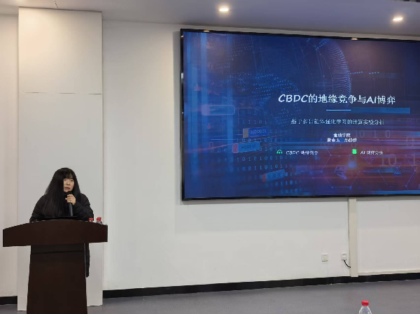 曹春玉以“央行数字货币的地缘竞争与AI博弈策略探索”为题,展开分享。她将复制子动力学与多智能体强化学习(MARL)有机结合,构建了可计算的仿真框架,系统揭示了CBDC在跨国竞争中的策略演化与市场结构演变,为理解数字货币时代的国际货币博弈提供了重要的新范式。