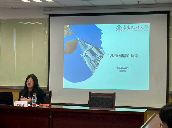 鄢姿俏副教授分享的主题是《合规管理前沿探索》。在中国经济转型的关键阶段,企业合规管理已成为贯彻落实全面依法治国战略的重要举措。2018年,国资委发布了《中央企业合规管理指引(试行)》,标志着合规管理在我国从理念倡导走向制度实践。然而,企业合规管理建设长期面临着上热下冷的现实困境。由于合规管理具有显著的正外部性特征,企业往往将合规视为成本项,而非能带来收益的投资项,导致企业推进合规管理建设的动力缺乏。鄢姿俏副教授的研究聚焦行政监管引导下的中央企业合规管理建设情况,探讨行政监管与企业自律的互动逻辑,为理解中国特色的企业治理转型提供新视角。