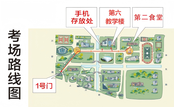 考点将于12月19日在上川路995号学校1号门口设置考生路线图。考生可凭准考证和本人有效居民身份证在12月19日9:00至16:00时间段内来校提前熟悉环境。